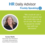 During an interview with Carlee Wolfe, Associate Vice President of Leader Development and Organizational Effectiveness at Hyatt Hotels Corporation, she told HR Daily Advisor that the core of Hyatt Hotel’s development is to never move so fast you forget to make decisions with empathy. Before Wolfe’s presentation at SPARK Talent 2025, she hoped that if the […]